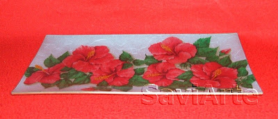 Gosto muito de trabalhar em vidro ,pois permite ter um acabamento muito perfeito além de ser mais rápido e fácil. Este trabalho foi executado com decoupage, papel de arroz e patine dourada