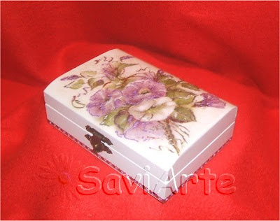 já a pensar na Páscoa, aqui estão duas caixinhas para as amêndas. Pintei-as com tinta acrílica branca e fiz découpage. Na caixinha quadrada o pormenor da imitação de um paninho rendado pintado à mão e na rectangular usei o papel de arroz. Terminei com verniz mate para protecção.