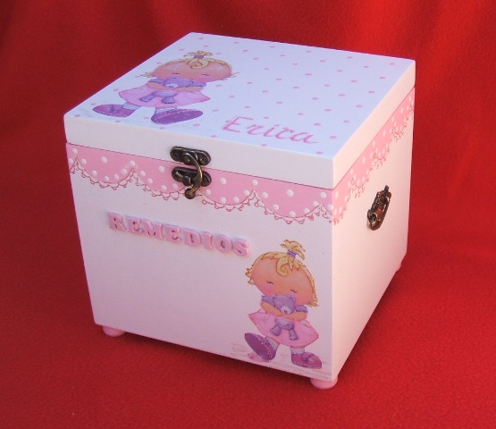 Caixa de remédios para a Erica , que espero que lhe dê pouco uso. Esta caixa foi a pedido de uma amiga ,para guardar os remédios da filhota. Foi um desafio para mim e para o meu marido ,pois foi quem fez a caixa.